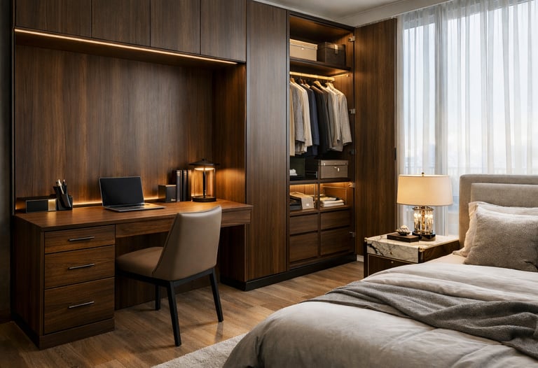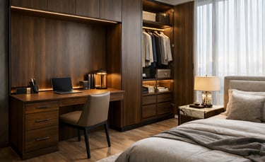 Diseñamos muebles funcionales y modernos para que tu espacio de trabajo en casa sea cómodo y ordenado, ayudándote a concentrarte mejor.